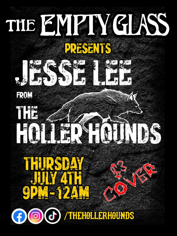 The World Famous Empty Glass Cafe has some great stuff this week to tell you about. Thursday at 5:30 PM Swingstein and Robin return with music for a cause. Friday Tim Courts and friends will fill the Happy Hour with music starting at 5:30 PM. Friday night at 9:30 PM Join The Vans, Ethan, Charlie, & Alondra, for a night of your favorite golden era jams. Check the graphics below for Saturday’s show. Sunday at 10 PM Christopher Carter of Hurl Brickbat treats you to an acoustic show.